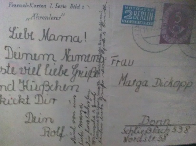 Heute wäre meine Mutter 100 Jahre alt geworden. Ich halte eine Karte in der Hand, die ich ihr als kleiner Junge zu ihrem Namenstag geschrieben habe. Kein Wunder, war doch zu jener Zeit der Namenstag noch wichtiger als der Geburtstag, Und es war viel schlimmer, der Mutter oder Oma nicht zum Namenstag zu gratulieren als ihren Geburtstag zu vergessen. Klar also, dass Oma und Opa auch ihre besten Wünsche mitschickten.