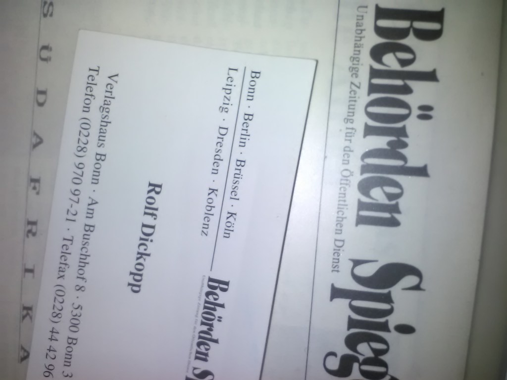 Ich lernte die Verlagsgründer Helga Woll und R. Uwe Proll mehr oder weniger zufällig in einer Kneipe in Bonn-Endenich kennen. Und da ich zu jener Zeit wieder einmal einen Job suchte, kam mir das Stellenangebot als Anzeigenvertreter für den Behörden Spiegel in Bonn gerade gelegen.
